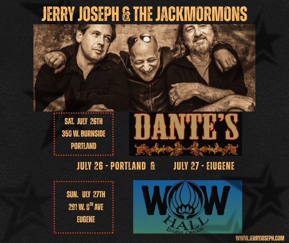 News Adam Ruback 9/7/25 Adam Ruback 9/7/25 Jerry Joseph & The Jackmormons - Panther Tracks: Volume 1 - Released Today! Read More Adam Ruback 8/19/25 Adam Ruback 8/19/25 Pink Light - 1st Single from Panther Tracks Vol 1! Read More Adam Ruback 8/19/25 Adam Ruback 8/19/25 Jerry Joseph & The Jackmormons - Seattle, WA - September 12-14, 2025 Read More Adam Ruback 7/7/25 Adam Ruback 7/7/25 Jerry Joseph & The Jackmormons - Portland & Eugene - July 26 & 27, 2025 Read More Adam Ruback 7/1/25 Adam Ruback 7/1/25 Jerry Joseph & The Jackmormons - Virginia City, MT 2025! Read More Adam Ruback 5/14/25 Adam Ruback 5/14/25 Jerry Joseph - Midwest - June 2025 (Solo) Read More Adam Ruback 3/26/25 Adam Ruback 3/26/25 Jerry Joseph & David Lipkind - April 2025 - Oregon Read More Adam Ruback 2/19/25 Adam Ruback 2/19/25 Jerry Joseph (Solo) & Kareeta* - March & April 2025 - California (*select nights) Read More Adam Ruback 2/6/25 Adam Ruback 2/6/25 Jerry Joseph - Montana - March 5th-9th, 2025 Read More Adam Ruback 2/6/25 Adam Ruback 2/6/25 Jerry Joseph - Laurelthirst Pub Annual Acoustic Residency 2025 - Feb 25th - Mar 2nd, 2025 Read More Adam Ruback 11/18/24 Adam Ruback 11/18/24 Jerry Joseph (Solo) December Tour 2024 Read More Adam Ruback 10/24/24 Adam Ruback 10/24/24 Jerry Joseph & The Jackmormons - NYE 2024 - Dec. 27th - 31st, 2024 Read More Adam Ruback 9/25/24 Adam Ruback 9/25/24 Oil - Livestream Read More Adam Ruback 9/12/24 Adam Ruback 9/12/24 Jerry Joseph - UK Residency November 2024 Read More Adam Ruback 9/3/24 Adam Ruback 9/3/24 🚨Jerry Joseph & The Jackmormons Southern Tour - Oct. 3rd - 9th, 2024🚨 Read More Adam Ruback 8/21/24 Adam Ruback 8/21/24 🎸🎵 Jerry Joseph & The Jackmormons - Seattle, WA - Sept 13, 14 & 15, 2024 🎵🎸 Read More Adam Ruback 7/11/24 Adam Ruback 7/11/24 Jerry Joseph - Rockin’ Oregon - August 8, 9 & 10th, 2024 Read More Adam Ruback 6/3/24 Adam Ruback 6/3/24 Jerry Joseph & The Jackmormons - 20th Anniversary in Virginia City, MT - August 2nd, 3rd & 4th, 2024 Read More Adam Ruback 4/9/24 Adam Ruback 4/9/24 🔥Jerry Joseph & The Jackmormons Epic 2-Week Tour! May 24th - June 8th, 2024🔥 Read More Adam Ruback 3/14/24 Adam Ruback 3/14/24 💥 Mouthful of Copper (2024 Deluxe Edition)💥 Pre-Order Available NOW! Read More Older Posts